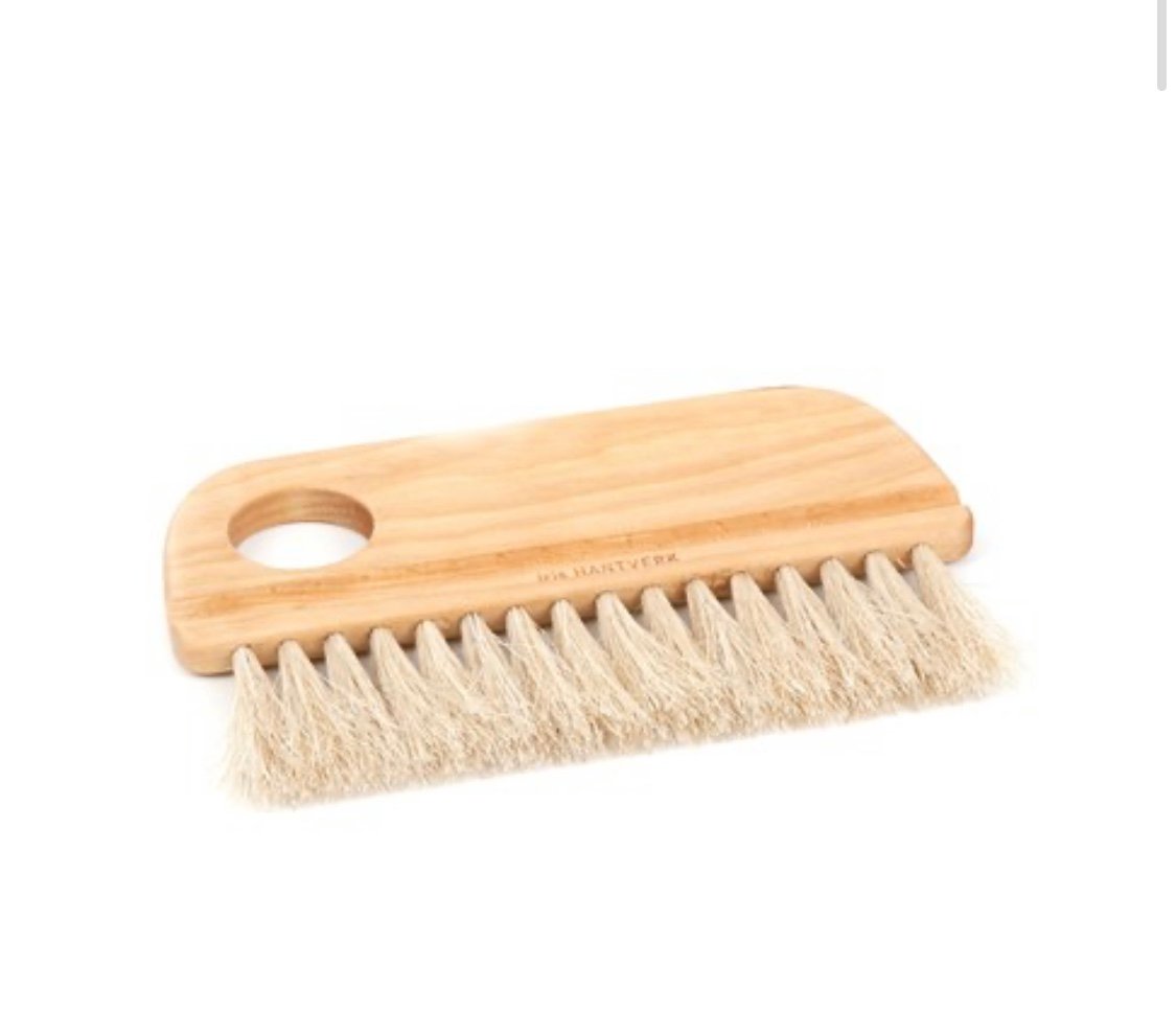 Baker's brush in birch and horse hair. Can be used to spread the flour evenly over the baking board, removes excess flour from the bread and clean the work surface. Since horsehair is heat resistant it can be used in the oven. Part of a series with pastry brush and dough scraper.