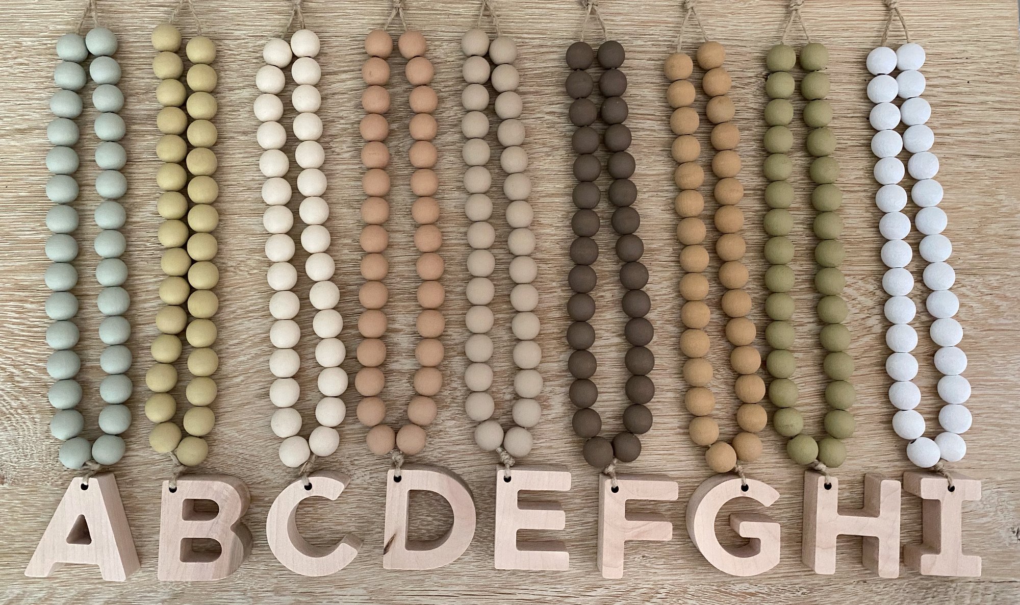 Pendants: 2" solid Maple wood letters A-Z, 26 individual options and full alphabet available