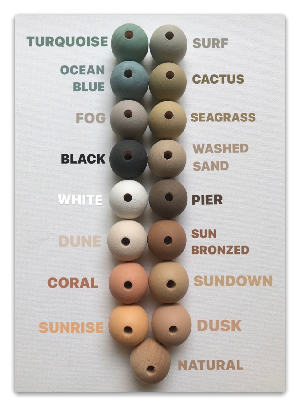 Beads: 3/4" wooden hand painted to your choice, 13 color options