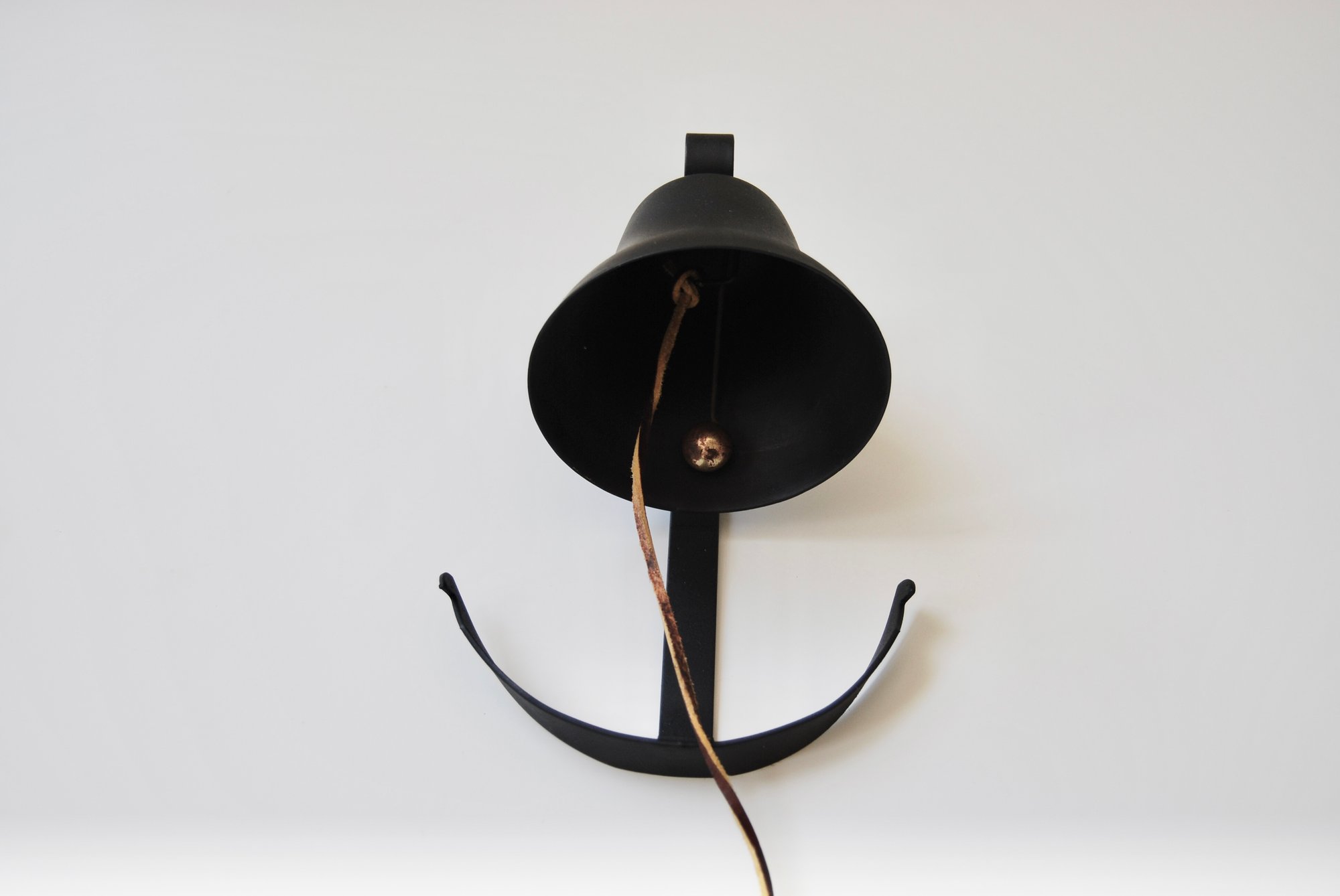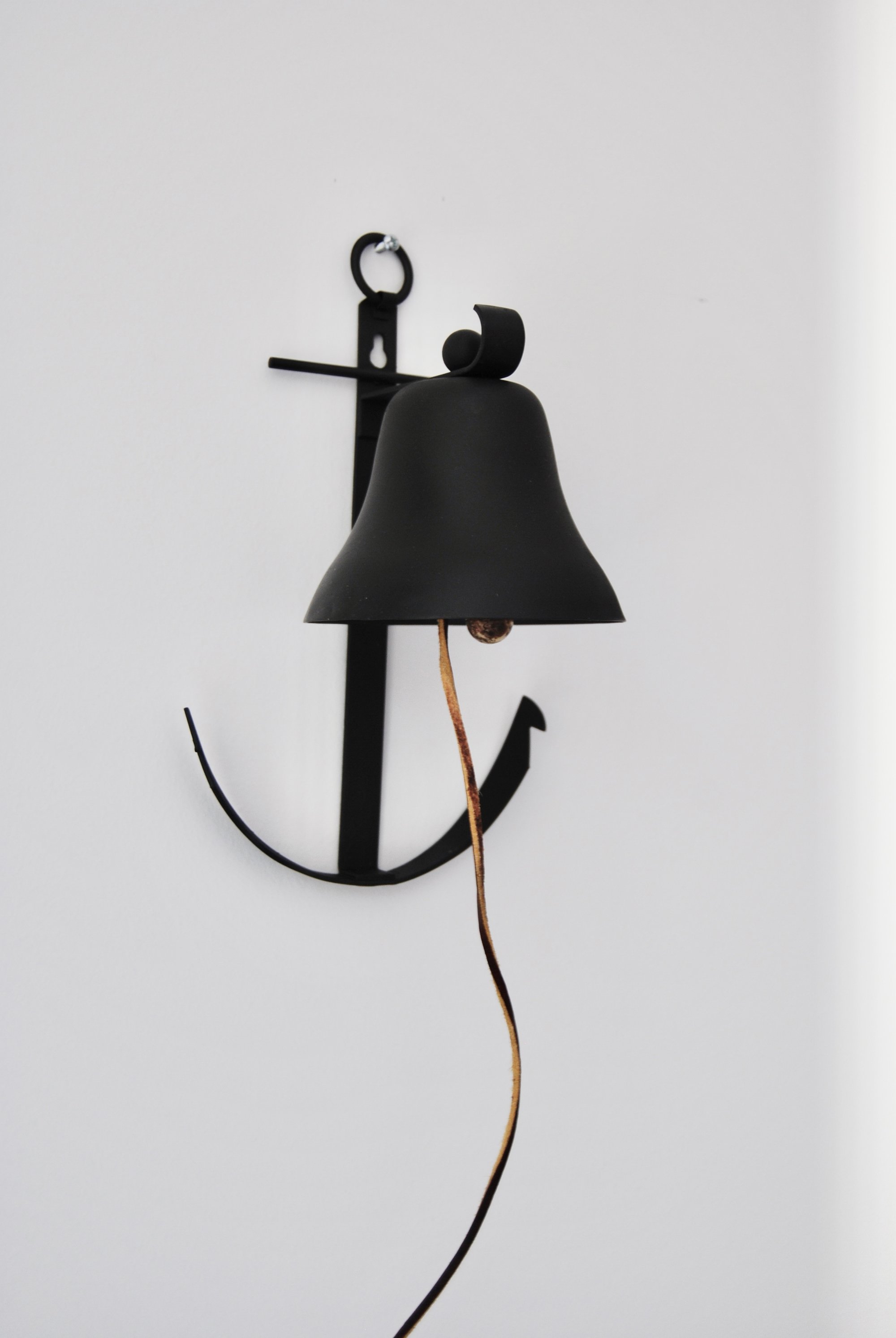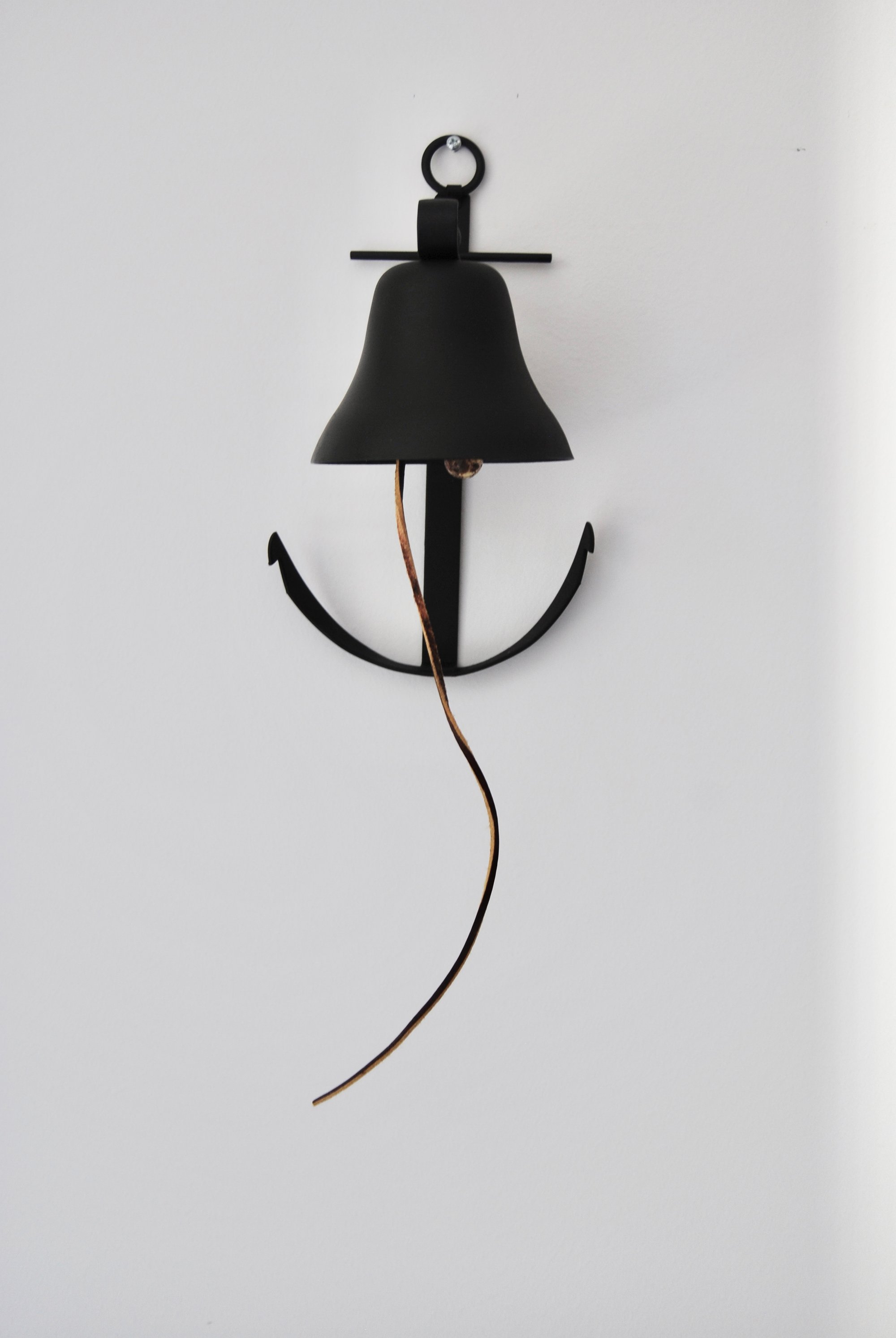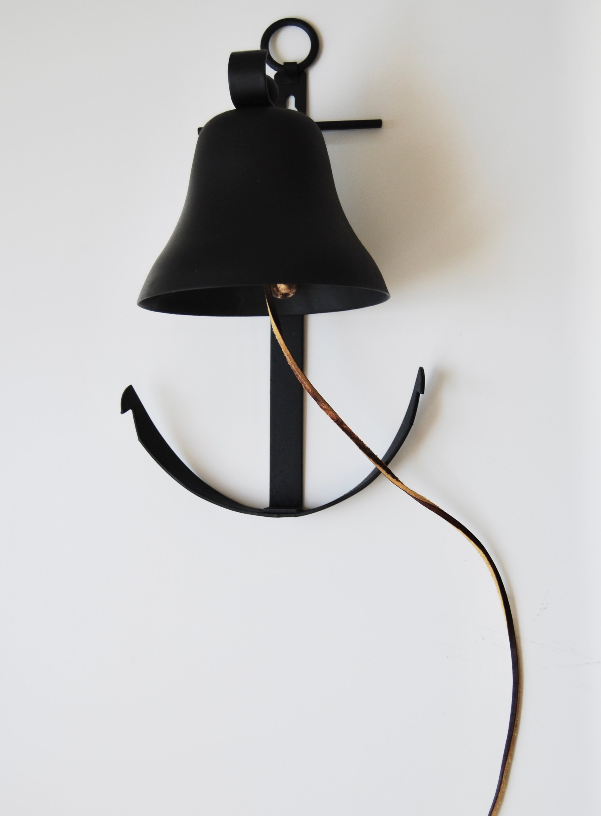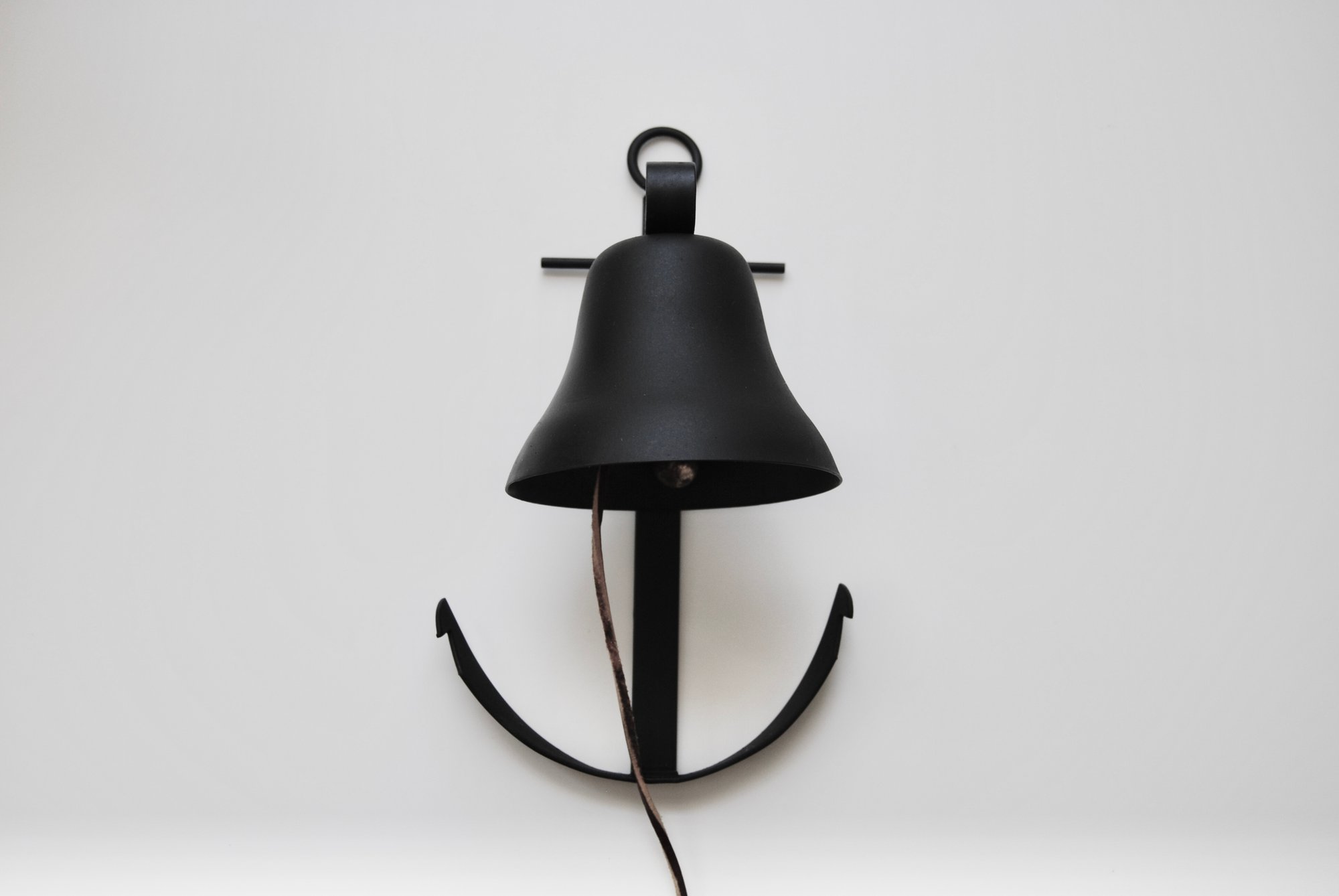 Adorable Vintage Matte Black Anchor Wall Bell with Leather Rope